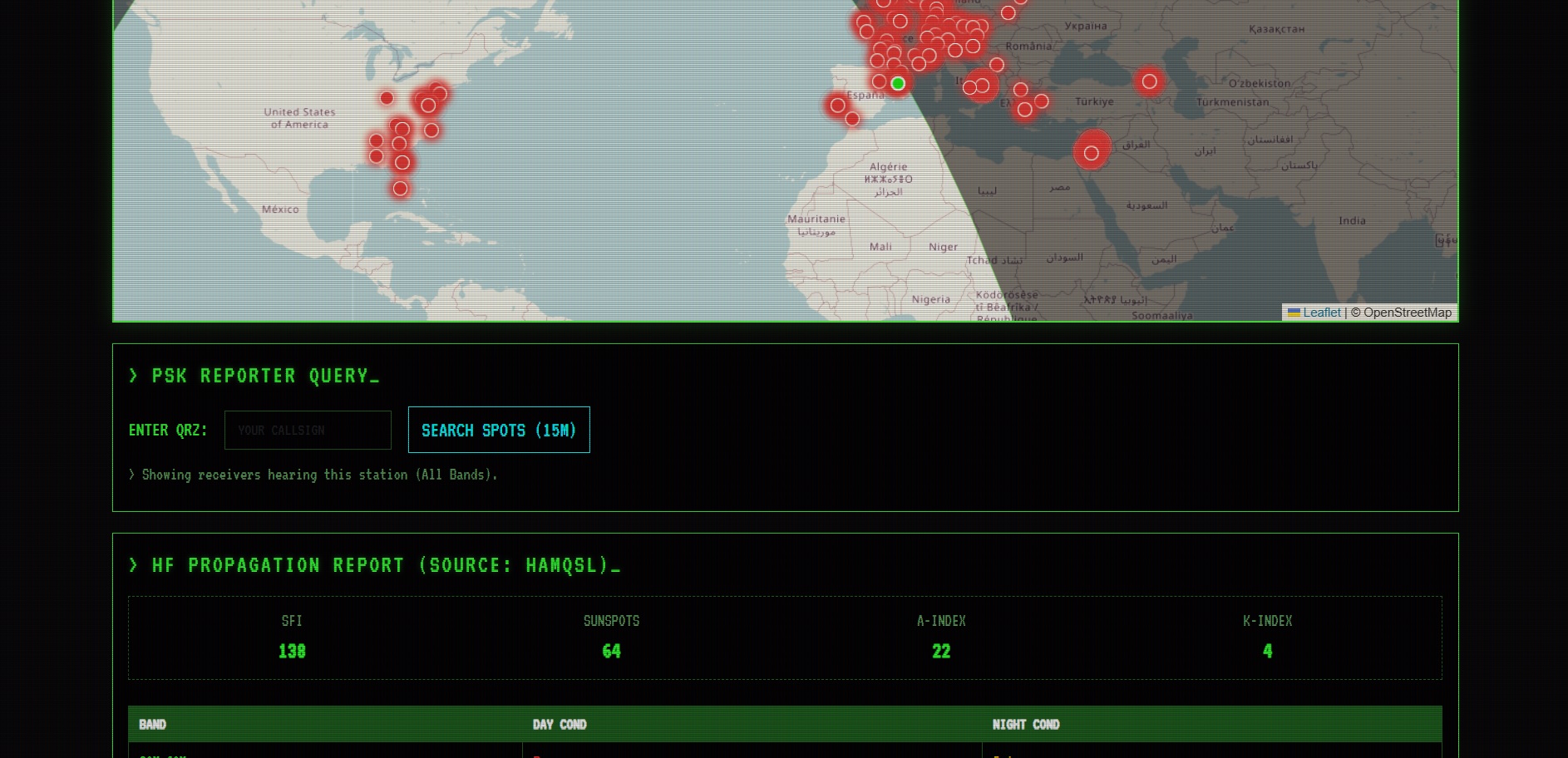 PSK Reporter: A quick query feature to check spots for your callsign on PSK Reporter (last 15 mins).
