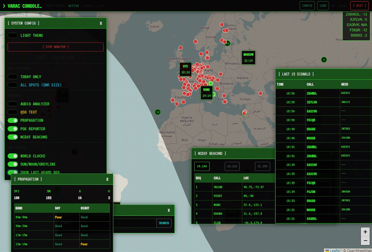 It's called VarAC Log Mapper - Terminal Edition. The idea was to create a dashboard that looks like it came straight out of an 80s computer (Green Phosphor CRT monitor style), but packed with modern monitoring features.